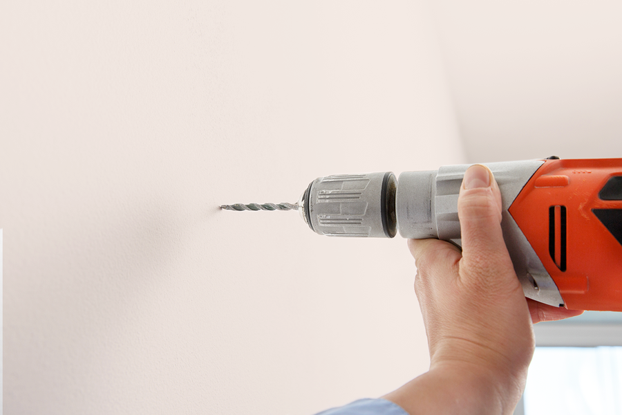 Line up the wall kit with the pencil-marked area and make a hole, then secure the hanging rail with the provided screws and wall plug.