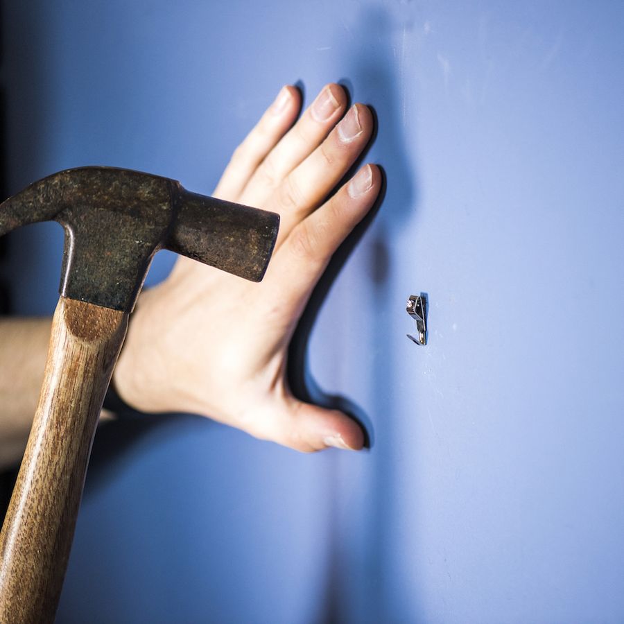For large wall art, mark two spots to ensure it hangs evenly.